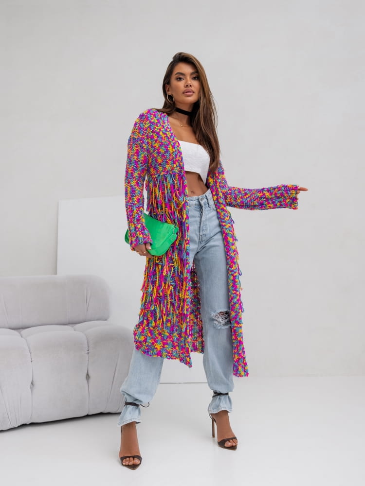 Wyjątkowy Kardigan z FRĘDZLAMI MULTICOLOR