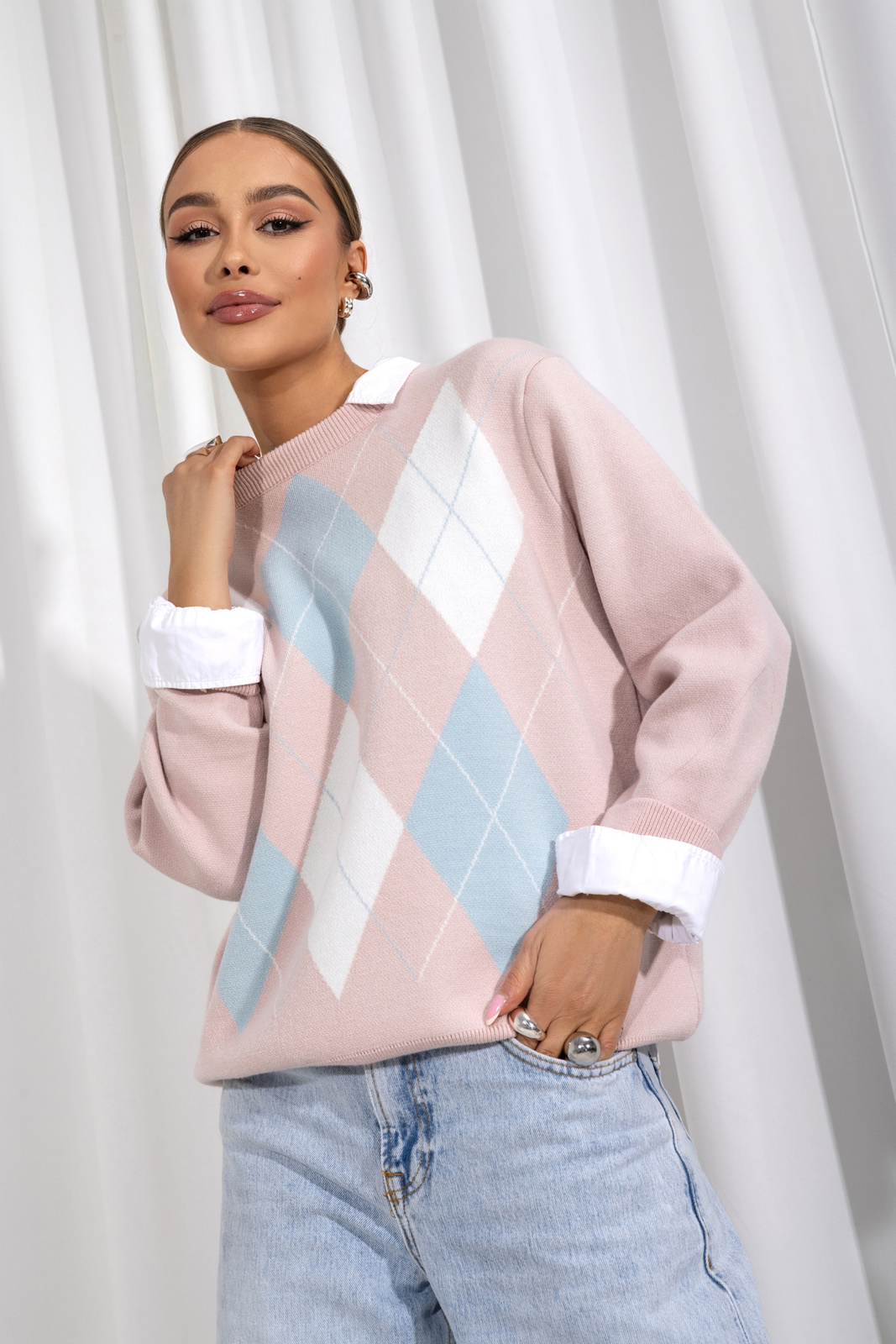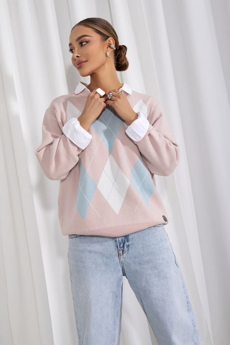 Sweter romby to połączenie modnego wzoru, staranności wykonania i komfortu noszenia.