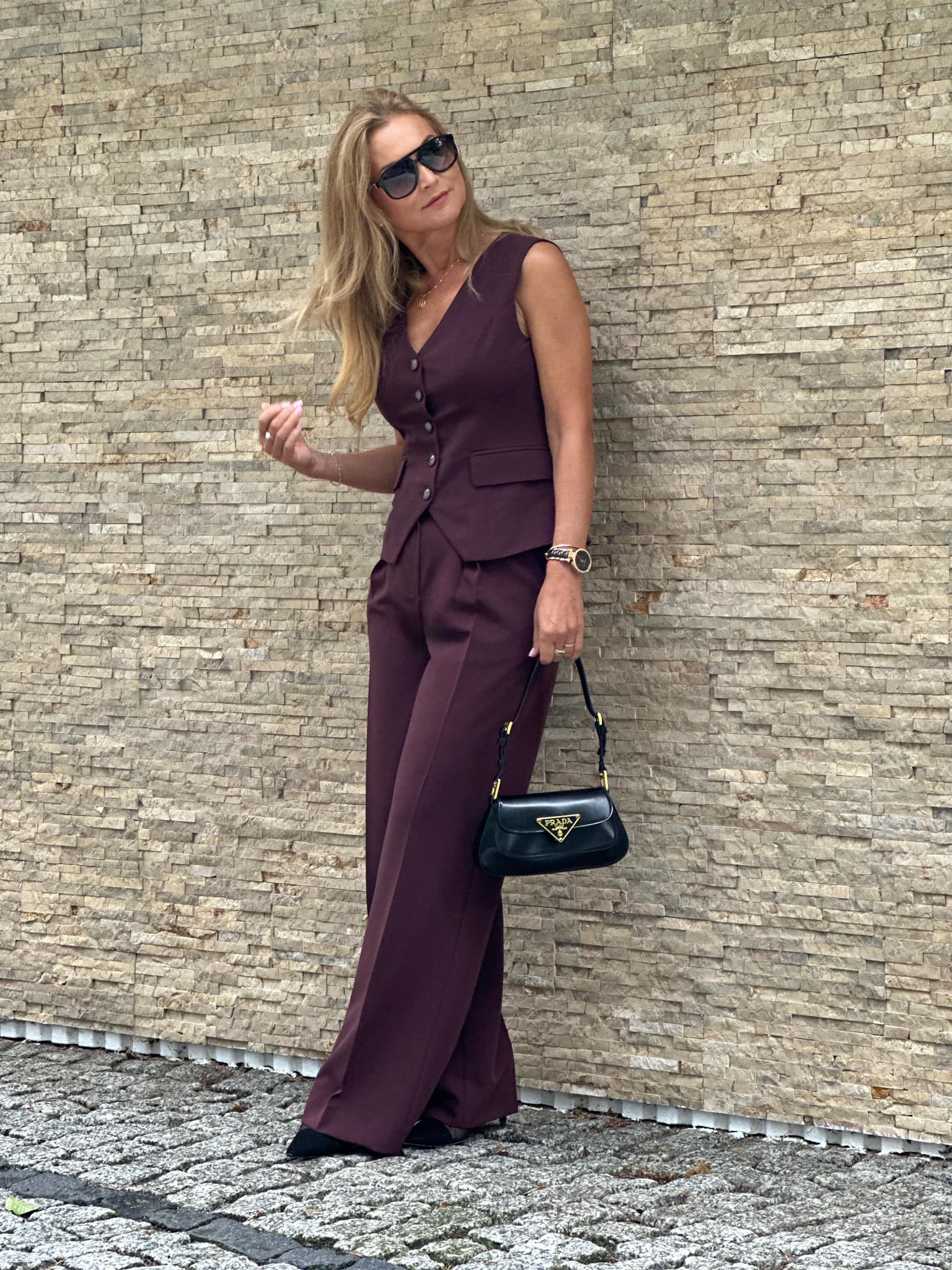 Efektowna dopasowana kamizelka zapinana na ozdobne guziki.
