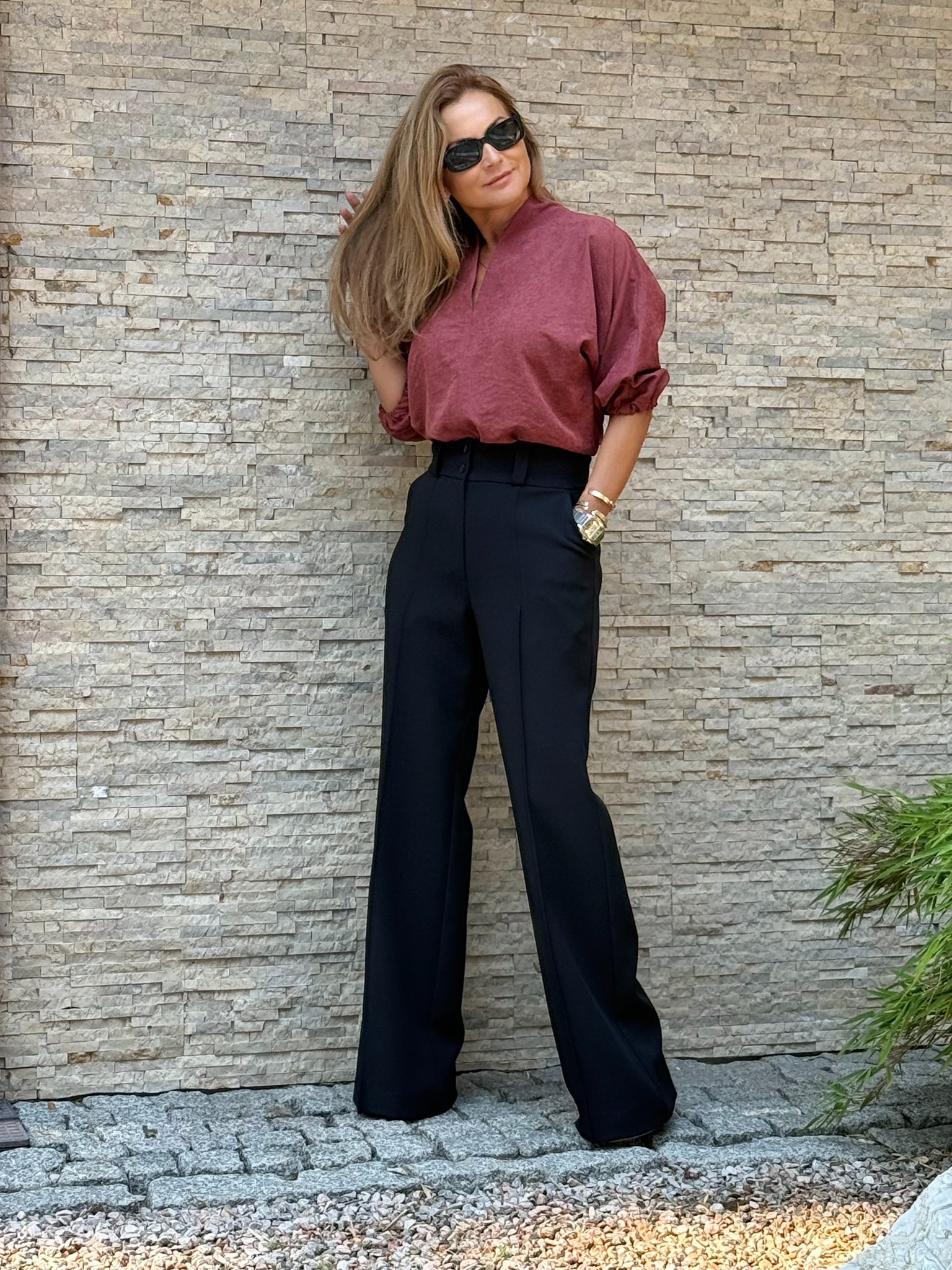 Czarne Eleganckie spodnie z przeszytym kantem.