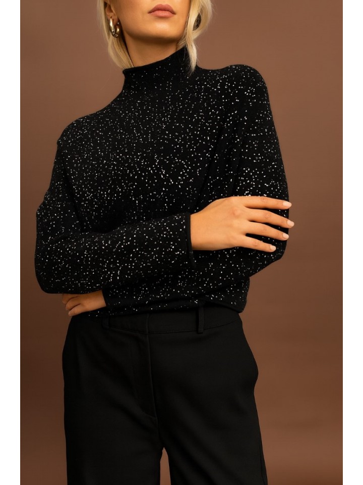 Sweter z półgolfem pięknie podkreśla sylwetkę, a delikatne zdobienia z cekinów dodają , efektownego blasku.