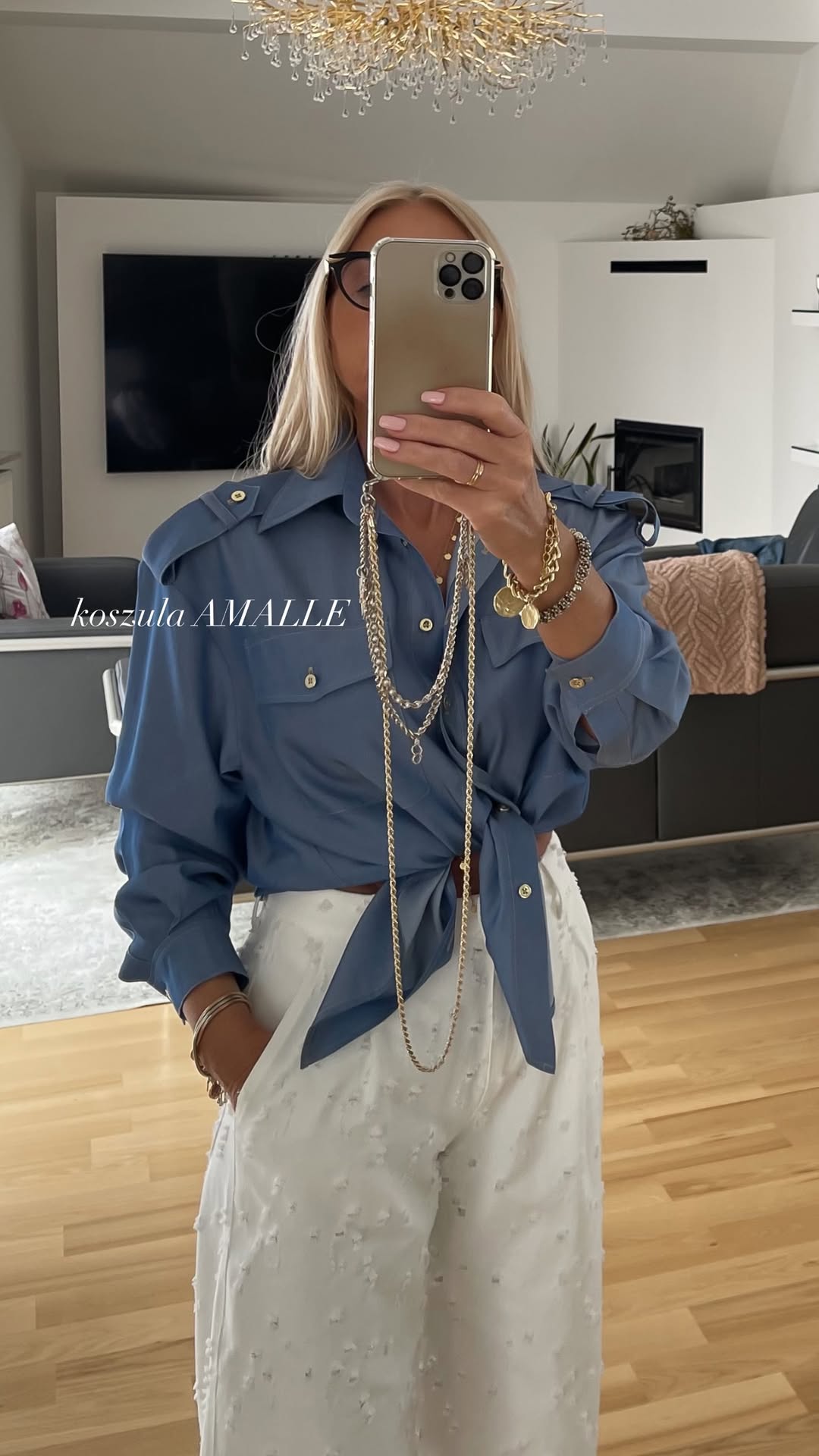 ✔ Modny fason – klasyczna koszula z nowoczesnym twistem, ozdobiona pagonami na ramionach i złotymi guzikami, które dodają jej wyjątkowego charakteru.
